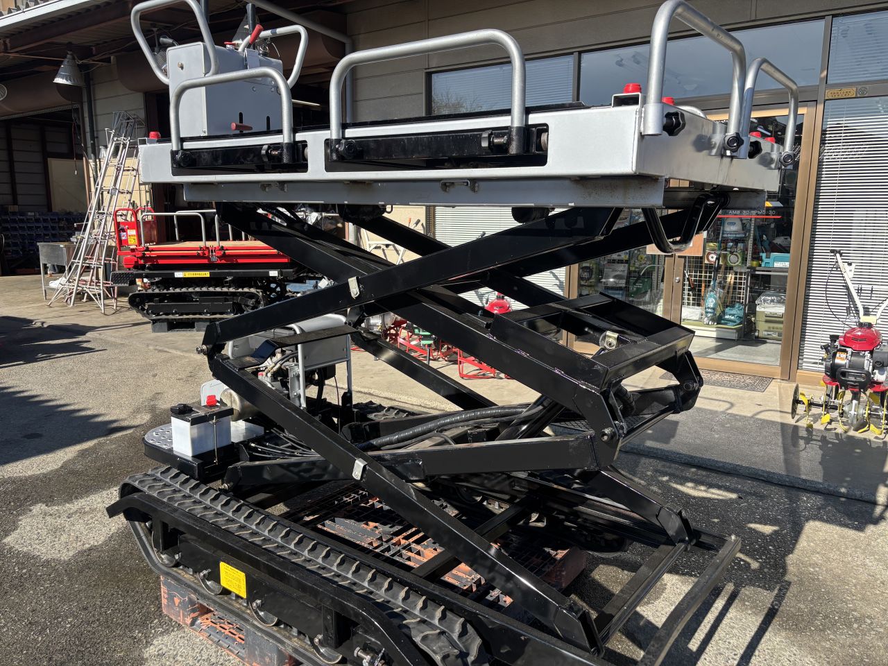 油圧リフトで高さ3mまで上がりますし、引き出しは電動なので作業が捗る一品となっております。
