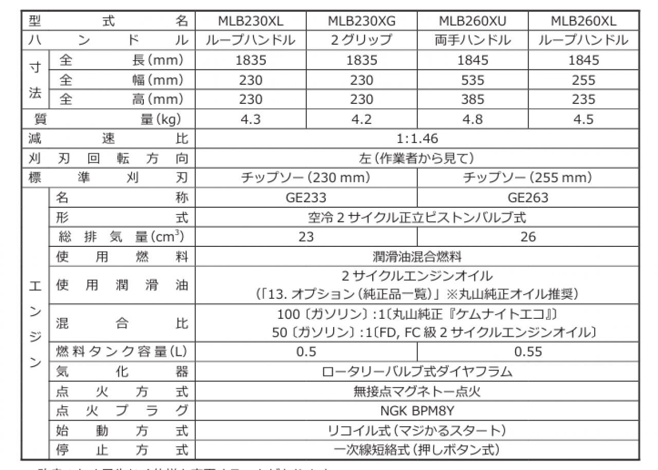 《MLB260XU》両手ハンドル