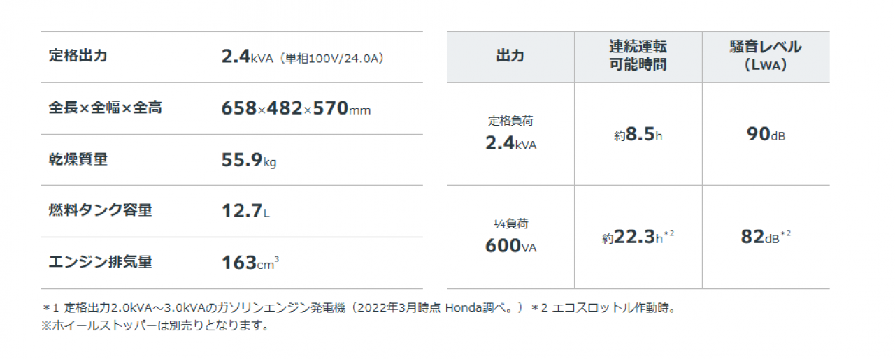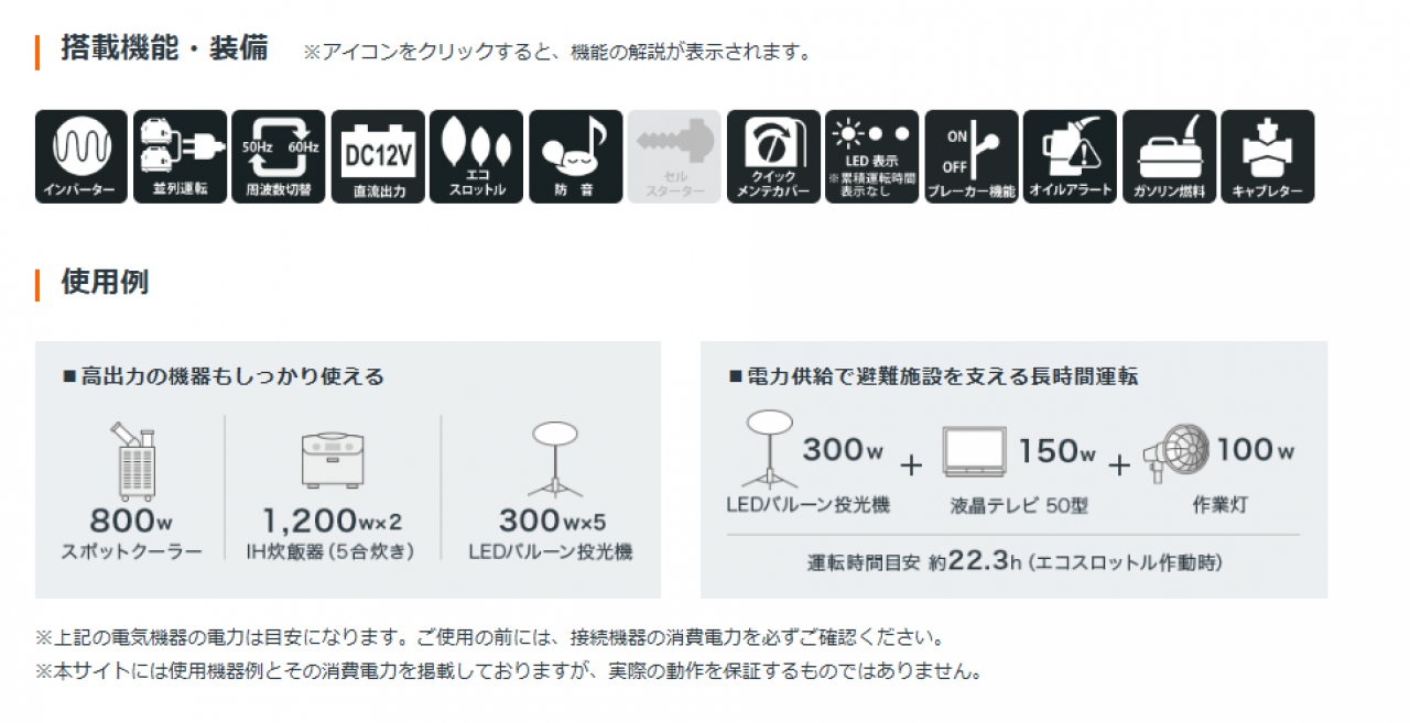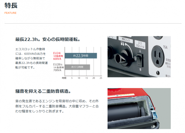 連続運転時間:約22.5※?約8.5[1/4負荷?定格負荷] ※エコスロットル作動時