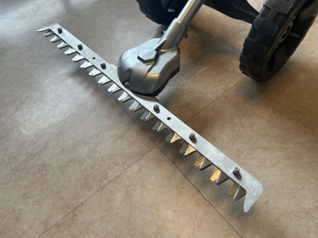 ヘッジトリマ刃で石飛び低減